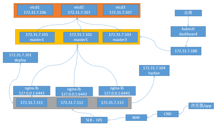 K8S控制端,通过一个VIP做高可用,这里VIP地址配置为172.31.7.188