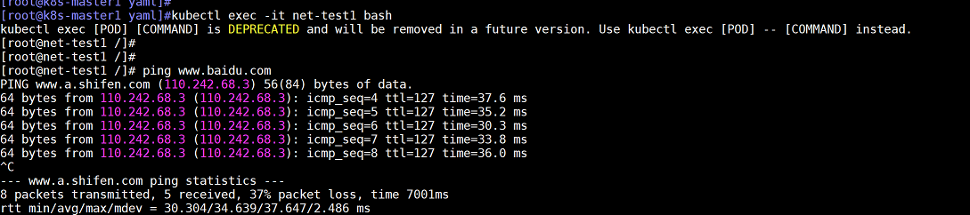kubectl delete pods net-test1 -n default #直接删除pod,不推荐这种删除方式,因为如果pod根据yaml文件创建,可能会有其他依赖组件,删除不干净。