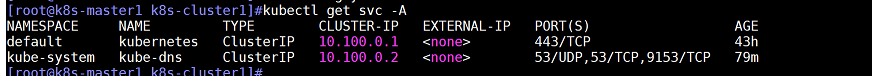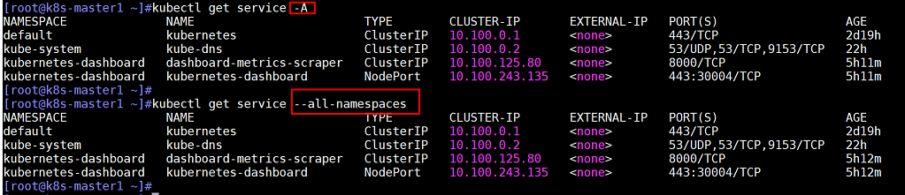 kubectl get service --all-namespaces #查看所有名称空间下的service,这里的--all-namespace可以使用-A代替,即:kubectl get service -A