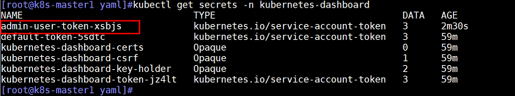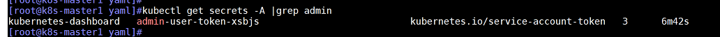注意:查询时要制定查询的资源类型为secrets和namespace为kubernetes-dashboard
