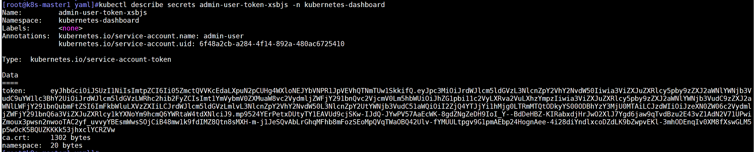 kubectl describe secrets admin-user-token-xsbjs -n kubernetes-dashboard