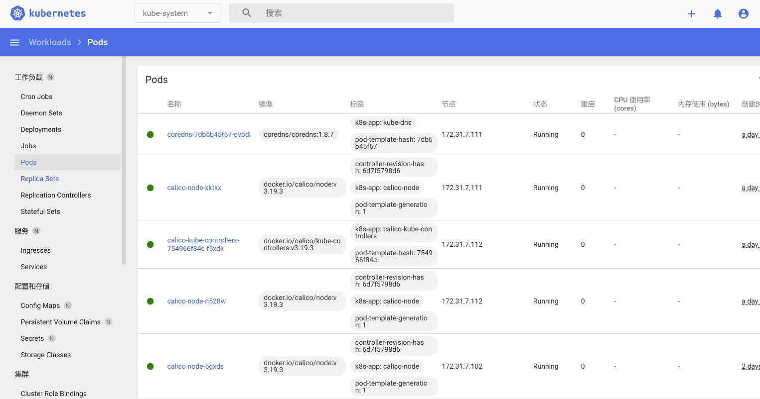 第一列NAMESPACE:是指名称空间,是指容器所在的namespace名称
