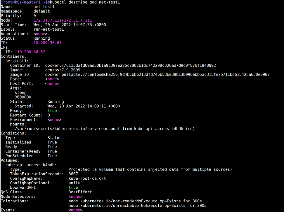 kubectl describe pods net-test1 -n default #如果在默认namespace(即default),可以不写