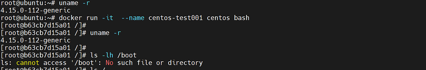 从镜像大小上面来说,一个比较小的镜像只有十几 MB,而内核文件需要一百多兆, 因此镜像里面是没有内核的,镜像在被启动为容器后将直接使用宿主机的内核,而镜像本身则只提供相应的 rootfs,即系统正常运行所必须的用户空间的文件系统,比如/dev/,/proc,/bin,/etc 等目录,所以容器当中基本是没有/boot目录的,而/boot 当中保存的就是与内核相关的文件和目录。