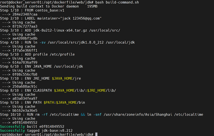 root@docker_server01:~# docker commit -m "nginx image" b7e7763fbace jack/centos-nginx:v1 #这里的v1就是镜像tag号,可以通过修改tag号区分不同的镜像版本