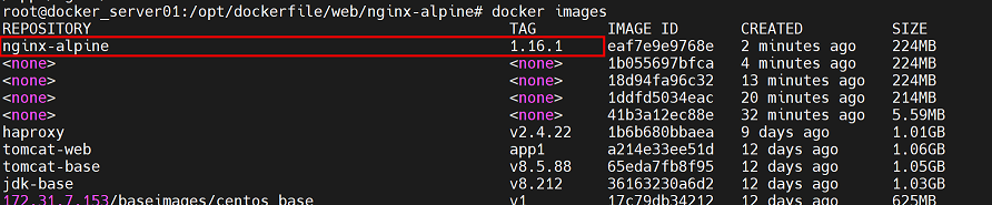 root@docker_server01:/opt/dockerfile/web/nginx-alpine# docker run -it -d -p 80:80 nginx-alpine:1.16.1