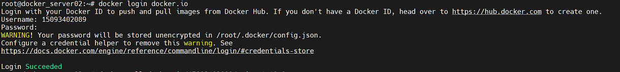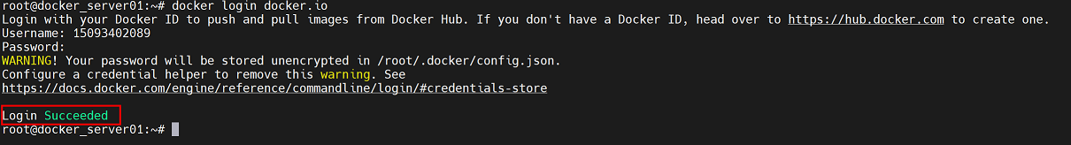 root@docker_server01:~# docker login docker.io #显示“Login Succeeded”表示登录成功