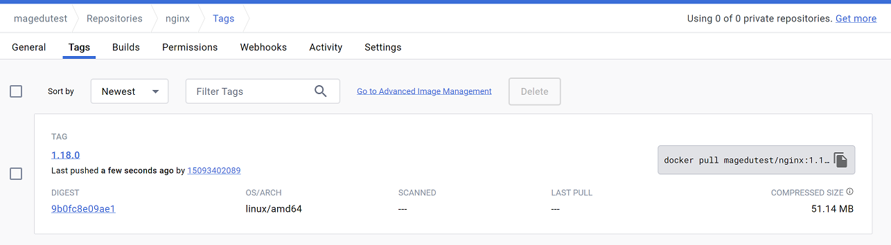 root@docker_server01:~# docker push docker.io/magedutest/nginx:1.18.0