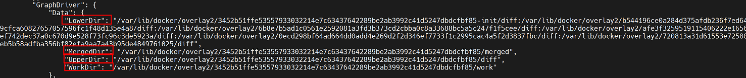 MergedDir:容器的文件系统,使用 Union FS(联合文件系统)将 lowerdir 和upperdir 合并给容器使用。