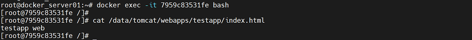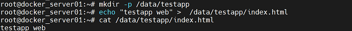 root@docker_server01:~# echo "testapp web" > /data/testapp/index.html