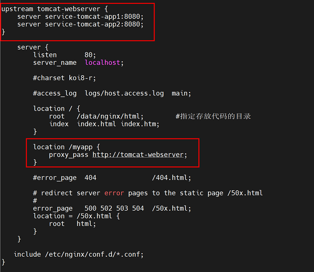 #这里要写tomcat的service名称(service-tomcat-app1 和service-tomcat-app2),便于nginx容器可以通过tocmat service名称访问后端tomcat容器