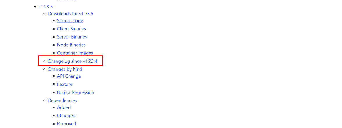 (5)找到想要的版本,点击CHANGLOG,这里下载1.23.5版本