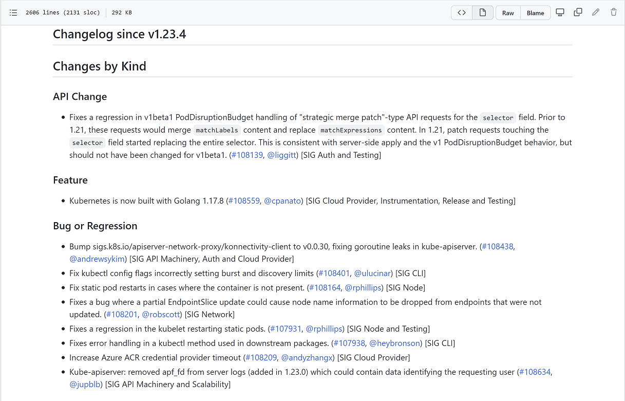 注意:如果是大版本内的小版本升级(如从1.23.1升级到1.23.5),一般不会出现比较大的变动,小版本的升级侧重于bug修复、增加稳定性等;如果是跨版本升级(如从1.21.6升级到1.23.1),要注意k8s的api接口是否发生变化,一定要在升级前做好测试,测试没有问题后再进行升级