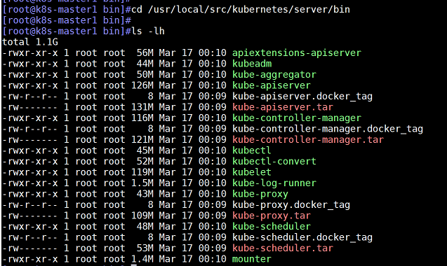 在/usr/local/src/kubernetes/server/bin目录下有所有需要的二进制文件