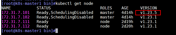 查看k8s版本,master1的版本已经升级为1.23.5