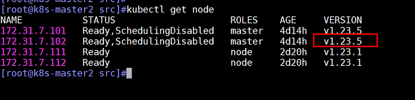 查看k8s版本,master2的版本已经升级为1.23.5