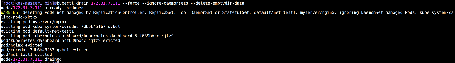 kubectl drain 172.31.7.111 --force --ignore-daemonsets --delete-emptydir-data