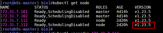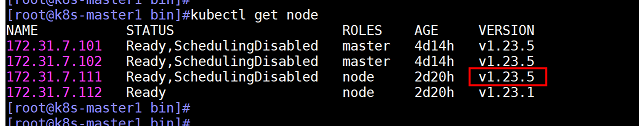 5、在master上查看node1的k8s版本,已经升级到1.23.5