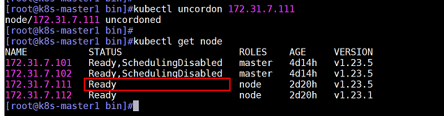 kubectl uncordon 172.31.7.111
