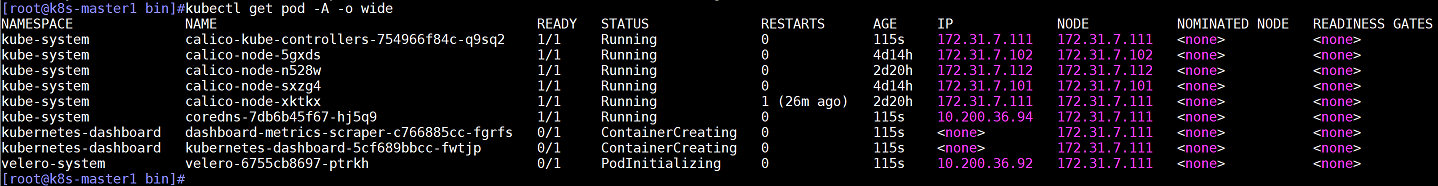 查看pod,容器都被驱逐到另一个node1(172.31.7.111)节点上