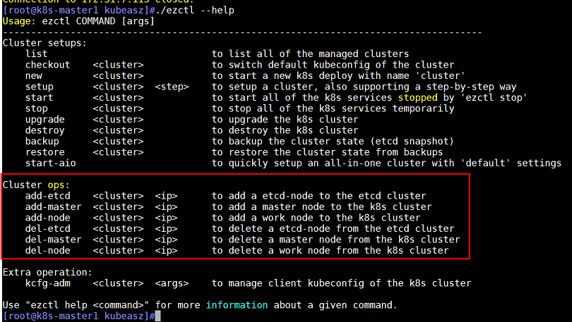 命令格式:/etc/kubasz/ezctl <command> <cluster-name> <ip>