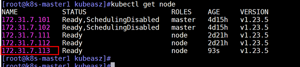 如/etc/kubeasz/ezctl add-node k8s-cluster1 172.31.7.113