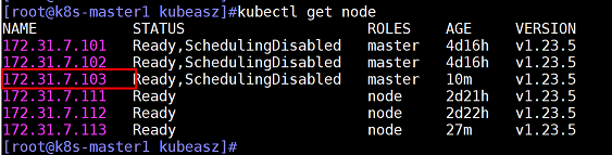 查看node状态,master3节点172.31.7.103已经被添加,且k8s版本为1.23.5