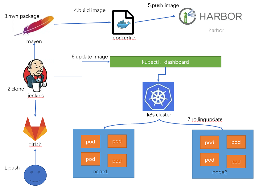 6、上传完成后,jenkins通过命令或者客户端调用k8s的api接口更新镜像(通过kubectl命令或者在dashboard进行操作)