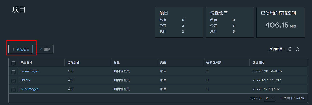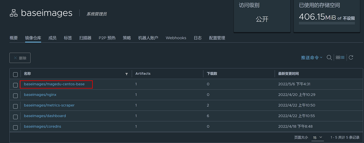 4、如果harbor镜像仓库没有baseimages仓库,需要先创建baseimages仓库