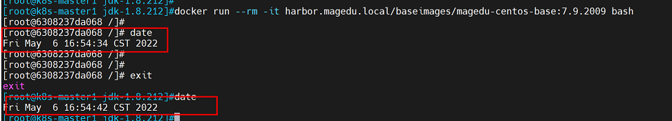 docker run --rm -it harbor.magedu.local/baseimages/magedu-centos-base:7.9.2009 bash