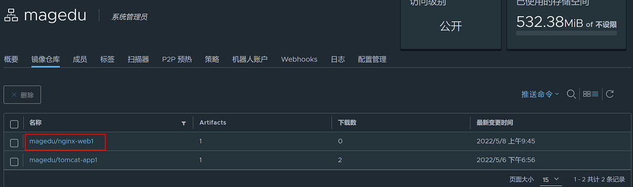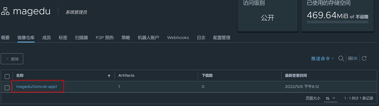 查看harbor镜像仓库,镜像上传成功