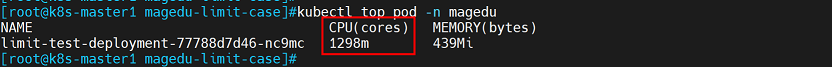 可以看到CPU使用率在1.3核左右,说明CPU限制已生效