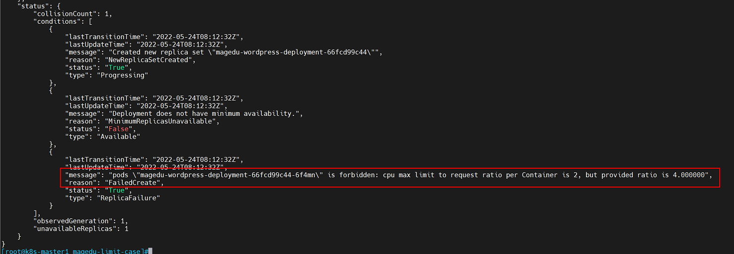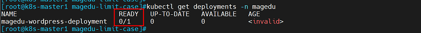注意:以上yaml文件中CPU的配置违反了:(1)magedu-wordpress-nginx-container容器的CPU requests/limits比例值大于2