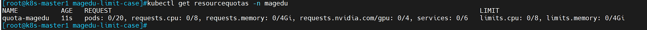 kubectl get resourcequotas -n magedu