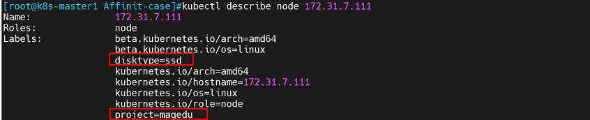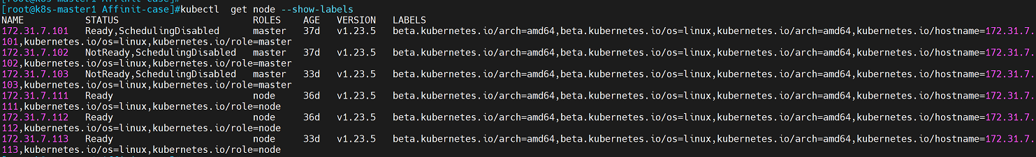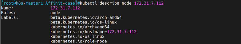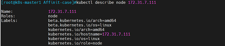 如果需要查看某个node的标签,需要在node后加上node ip地址。即:kubectl get node 172.31.7.111 --show-labels
