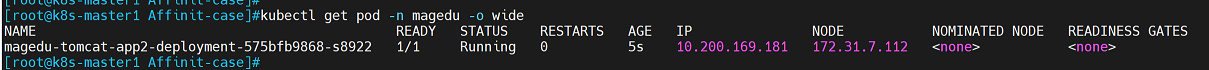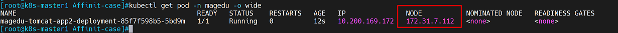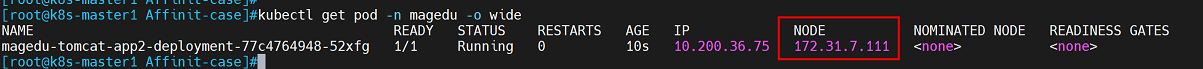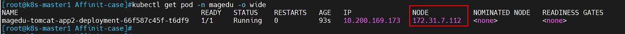 示例:将pod调度到目的node节点,yaml文件中指定的key和value必须精确匹配(通过指定标签,该pod一定会被调度到172.31.7.112上)