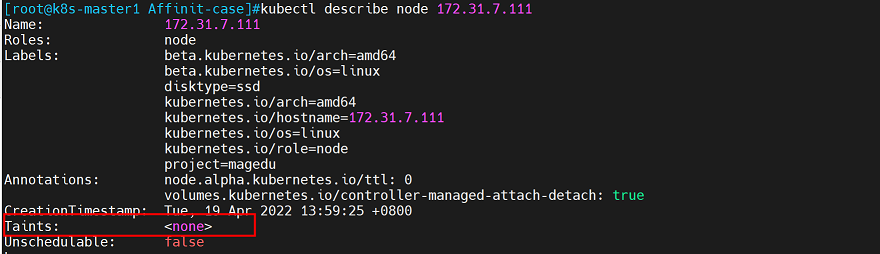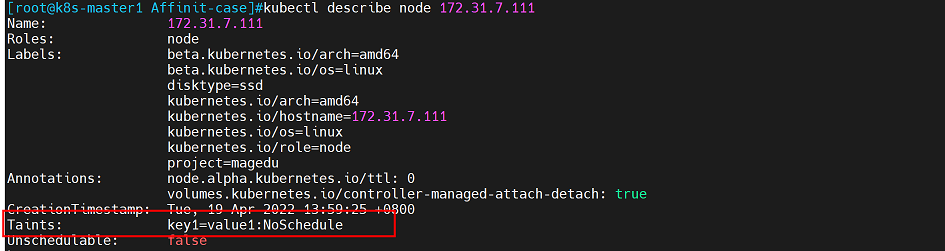 kubectl taint nodes 172.31.7.111 key1=value1:NoExecute   #会将172.31.7.111上除了daemonset类型的其他容器驱逐至别的主机