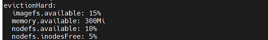 k8s集群会预留一部分资源,当预留资源不足时,kubelet会自动发起驱逐,以下为默认的预留资源阈值,当资源小于阈值时会发起驱逐: