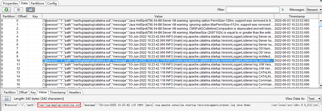 type: filebeat-tomcat-catalina      #定义日志类型type,要和logstash中input配置段中type一致,否则logstash将无法从kafka获取日志