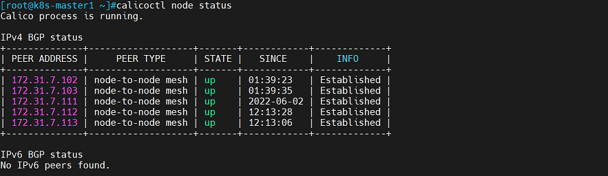 calicoctl node status #在master1节点172.31.7.101上查看路由表
