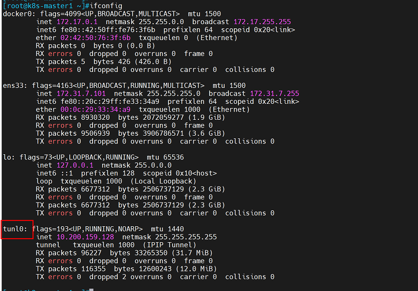 IPIP是一种将各node的路由之间做一个tunnel隧道,再把两个网络连接起来的模式。启用IPIP模式时,calico将在各node上创建一个名为“tunl0”的虚拟网络接口。