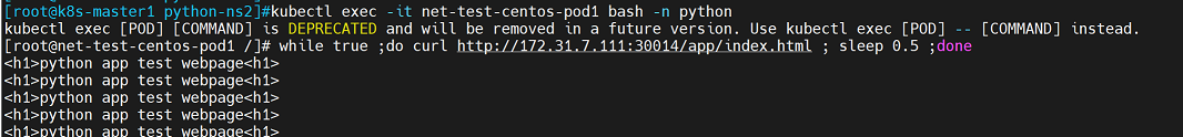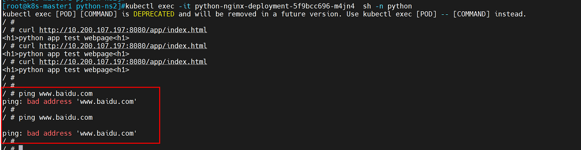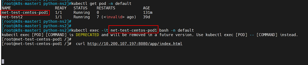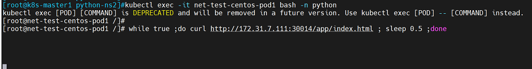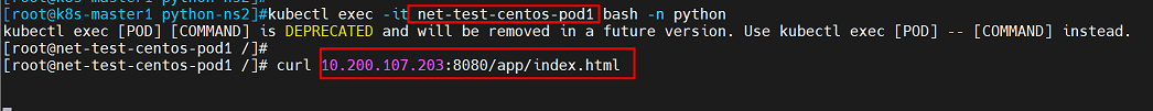 (4)在同namespace下测试容器进行测试,发现可以正常访问,这是因为测试容器地址不在网络策略限制范围内,因此可以正常访问