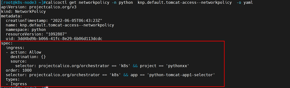 app: python-nginx-selector #匹配python namespace中app的值为python-tomcat-app1-selector的pod,然后基于egress中的指定网络策略进行出口方向的网络限制