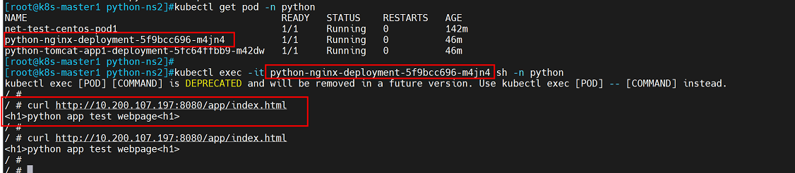 (2)进入python或linux namespace下的nginx,访问tomcat,可以正常访问