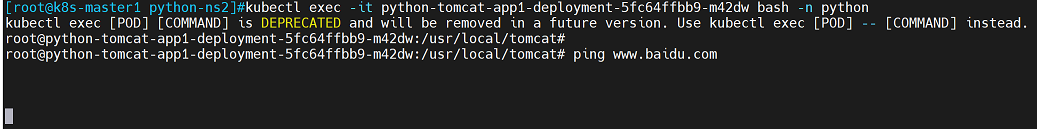 (1)进入tomcat容器,ping 百度域名,发现无法解析,这是因为关闭了53端口,导致无法进行dns解析
