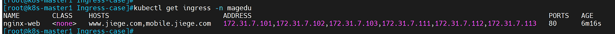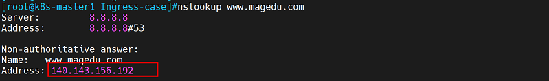 查看k8s集群外部域名www.magedu.com的公网地址: