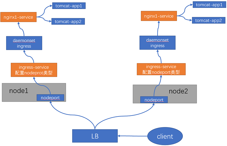 NodePort:在 cluster IP 的基础之上,通过在每个 node 节点监听一个可以指定宿主机端口(nodePort)来暴露服务,从而允许外部 client 访问 k8s 集群中的服务,nodePort 把外部 client的请求转发至 service 进行处理。