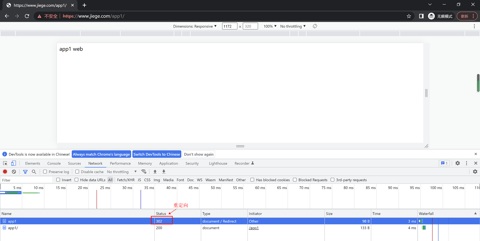 浏览器访问http://www.jiege.com/app1,内容可以正常显示