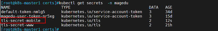 kubectl create secret tls  tls-secret-mobile  --cert=mobile.crt --key=mobile.key  -n magedu