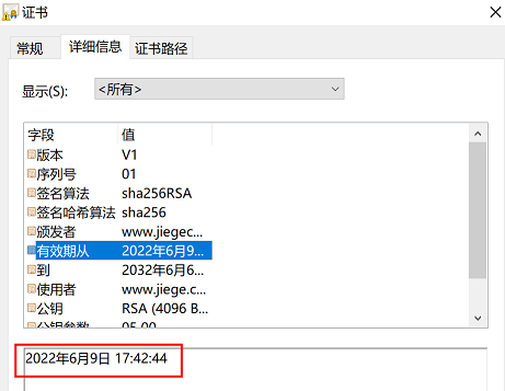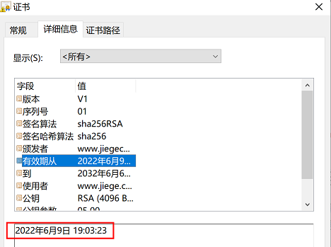 为了区分新旧证书,查看当前证书的生成时间